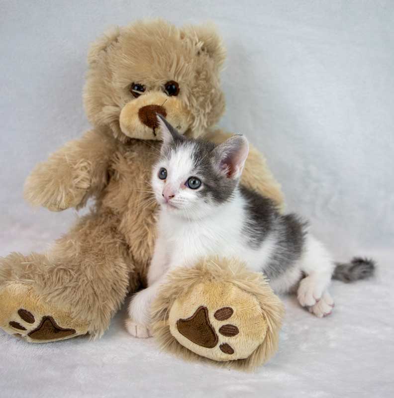• OTHER CATS/DOGS/KIDS: I get along great with my siblings, and I IMMEDIATELY flipped over on my back and showed my belly to the cats who lived in my former foster home. I may enjoy another kitty in my new home, so if you have a nice kitty at home who may enjoy a kitten friend, let’s meet! / The 100 lb. German Shepherd in my former foster home did not faze me. It likely will depend on the dog, but if you have a kitty-friendly doggie at home, we can probably be pals. / Children in my new home may be nice, since I am a playful kitten. Best they are gentle and know how to handle a kitten, and – of course, let’s meet!