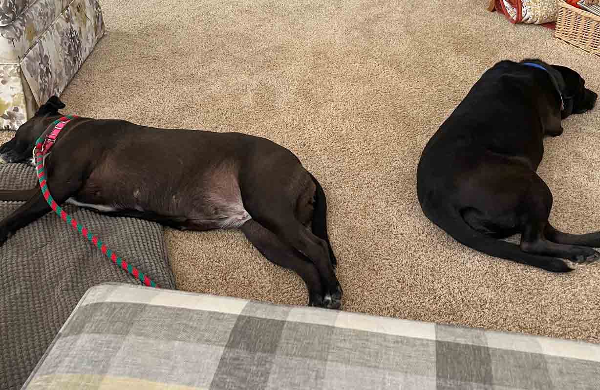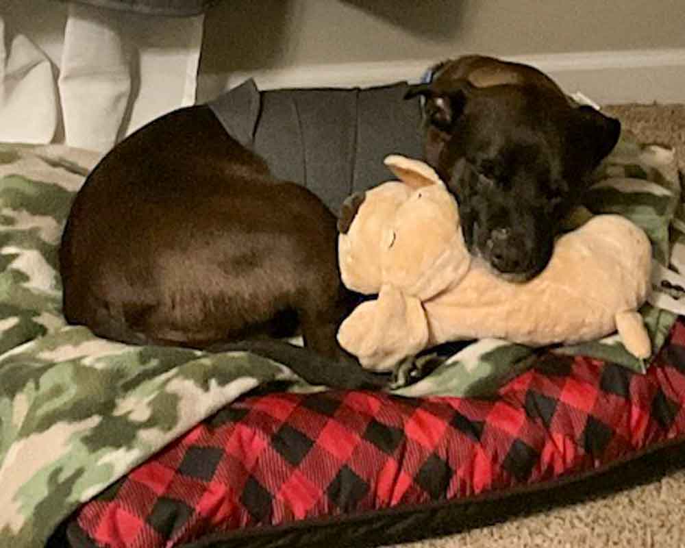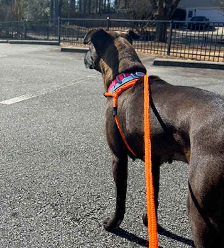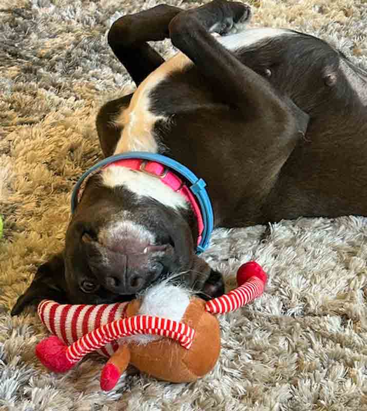 • SKILLS/CRATE/POTTY: I’m a smart girl who knows the ‘sit’, ‘down’, ‘stay’, ‘leave it’, ‘place’, ‘come’ and ‘shake’ commands. I walk nicely on a leash and know the fun command ‘shake’. On my walks, I show little interest in other people or pups. I look forward to learning more, so let’s have some training sessions together as my foster says that I’m very smart and can learn a lot more! / My crate manners were good at Mostly Mutts, however I do not like being in a crate in my foster home and damaged a metal crate there, but I have very good house manners without a crate, so I don’t need one. / I have great potty habits in my foster home and will stand by the door or softly whine when I need to go outside. I also whine at the door to notify my foster that I need to go out.