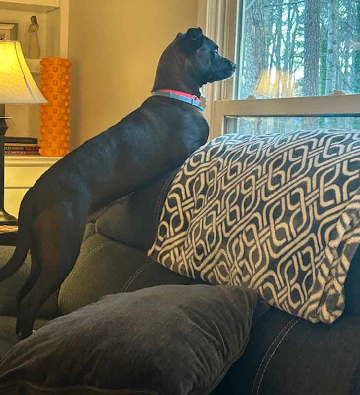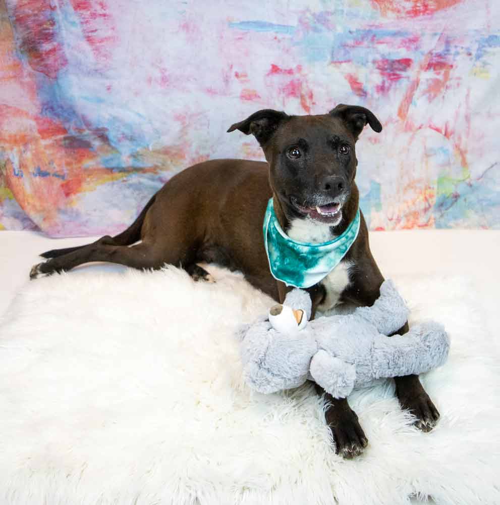 • LIKES/DISLIKES: Spending time with the volunteers is just the best, because I get the chance to go out and roll in the grass and on you! Then, I can give you kisses and nose nudges to request more attention – which I love! I enjoy playing with toys (sometimes performing my special squeakerectomy on them), enjoying a stuffed Kong, and getting those great belly rubs. Toss a tennis ball my way, and I'll jump up to catch it with precision! I love being outside, and have become quite fond of bird watching, perhaps we can do that together? I ride well in the car, so let’s go on some adventures! After playing, I enjoy curling up for a cozy nap on the couch. When I wake up, get ready for the cutest stretch you’ve ever seen — front paws on the couch, back paws on the floor — it's my signature move! / I’m not a fan of the busy traffic around the shelter and am much happier and more relaxed playing in the back yard. Otherwise, I’m sure I wouldn’t like it if I didn’t get enough love, attention, exercise and training.