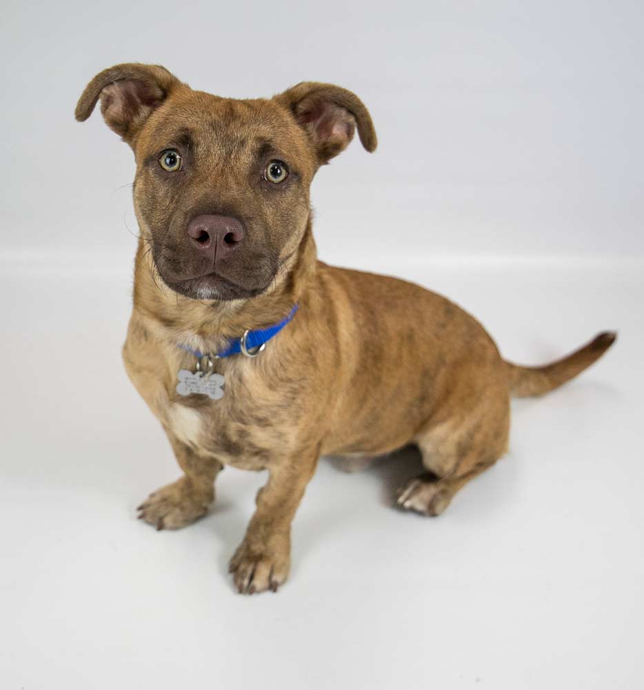 Hi, my name is Asher! Mostly Mutts rescued me from animal control, and I’m very grateful. The volunteers are taken with my unusual breed mix and my handsome ginger brindle coat, and compact body. I bet you will be, too! I spent some time in the prison/foster training program off-site and learned a lot! I am currently in a wonderful foster home, where I am able to continue all of my training. My foster mom and dad say that I am a VERY good student!